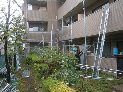 ので、事故を招かぬよう、足場の組立・解体期間はいつも以上に監理の目を光らせています。