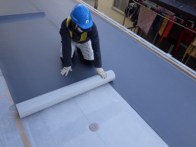 今、3年前に修繕工事を行った建物で屋上の防水工事を行っております。