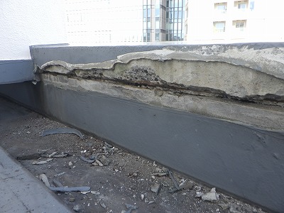写真は劣化の著しい部分です。コンクリートを斫り鉄筋を露出させ、