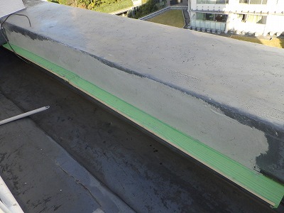 今回の工事では、ウレタン防水にメッシュ補強や顎下の水切りテープを施しおりますので、