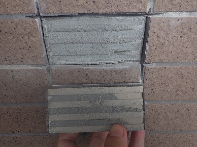 タイル張り完了後に新しく張ったタイルがしっかりと張り付いているのか確認する為に、
