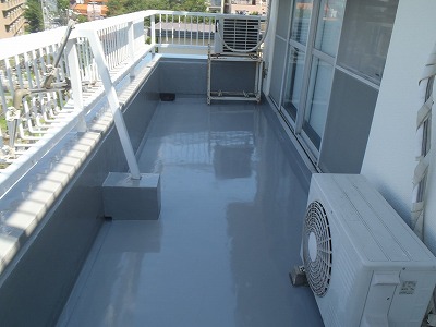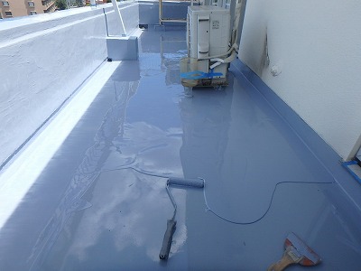 写真4 下地補修後はウレタン防水の更新を行います。