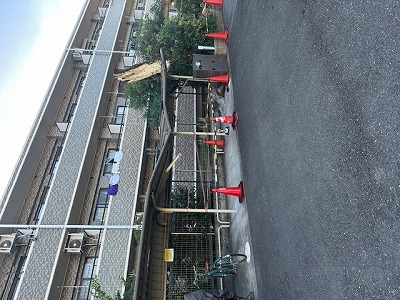 自宅アパートの大木が折れ横の駐輪場が潰れる事故がありました。