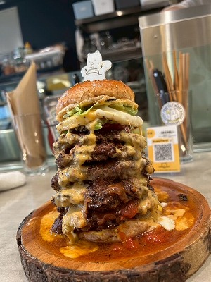 そこで食べられる名物グルメバーガーがボリューム満点の6段バーガーで背徳的すぎました。