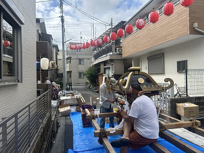 近所の他の町会の人に手伝ってもらったり、仲間を呼んでやっとこさ上がります。
