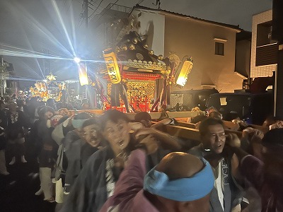 朝から神輿を組み立てて、神酒所を設営して、夕方から神輿を担ぎます。