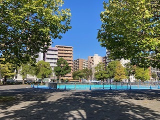 木場駅から徒歩5分ほどのところにある都立木場公園には芝生広場、遊具、