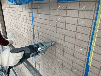 ビスクランプ工法は、特殊ビスでタイルを強固に固定するため、