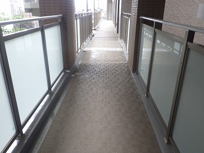 大規模修繕工事で廊下内やバルコニーの長尺シート張替工事を行うことがあります。