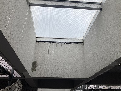 今回の物件でもトップライト廻りのシーリングが経年劣化で破断しており、