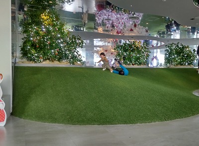 それでも人工芝を敷いた坂道やロープを編んだベンチ、