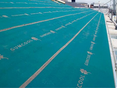 屋根全体にアスファルトシートを敷設します(写真2)。