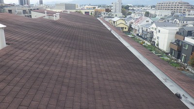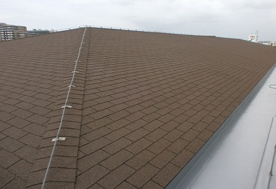 屋上は勾配屋根でアスファルトシングル防水仕上げでした(写真1)。
