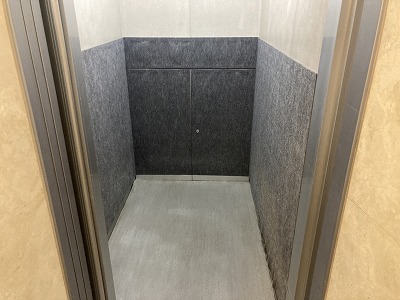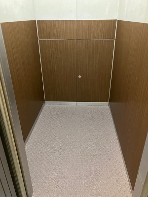 エレベーター内のニードルパンチをベルマグ(マグネットシート)に張替えを行いました。