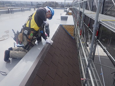 去年施工した現場で、斜屋根を新規シングル防水で施工しました。