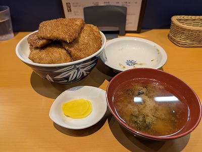 初めて見る人は、「え、かつ丼なのに卵でとじてないの?」と驚くかもしれません。
