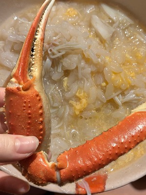 実で蟹しゃぶをして、カニ味噌は少し日本酒を入れて甲羅ごと焼き、