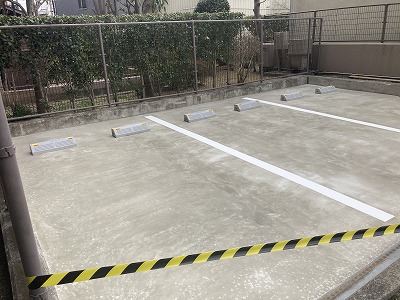 写真⑤金ごて押え、ライン引き、車止めを設置して完成です。