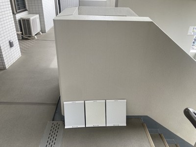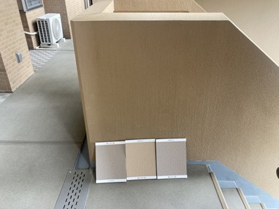 大規模修繕工事では、外壁などの仕上げ色を決定するために、見本板を準備します。
