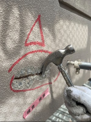 建築物の外壁の状態を見ていると、コンクリート面で表面が膨れや裂けている部分があります。