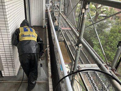 担当している現場にて、高圧洗浄作業が始まりました。