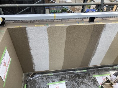中塗りと上塗りの色を変えて塗装を行う事で、規定された回数をきちんと塗れている事が出来ます。