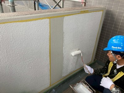 今回の試験では、実際の外壁面を区画ごとに分け、それぞれ異なる希釈率で塗装を行いました。
