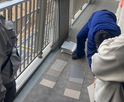 大規模修繕工事では塗装色や床のシートなどの色を管理組合様へ決めていただくイベントがございます、