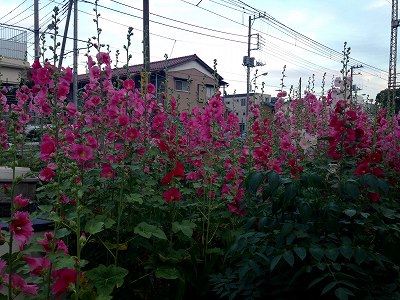 現場への通勤経路にタチアオイが咲いていて、もうすぐ梅雨が来ることを教えてくれ