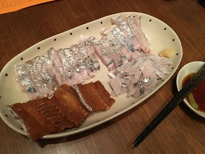 3枚におろして皮を炙ったり、中骨を揚げて骨せんべいにして頂きました。